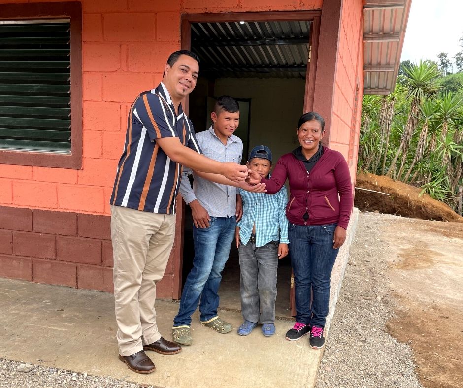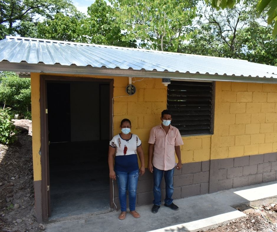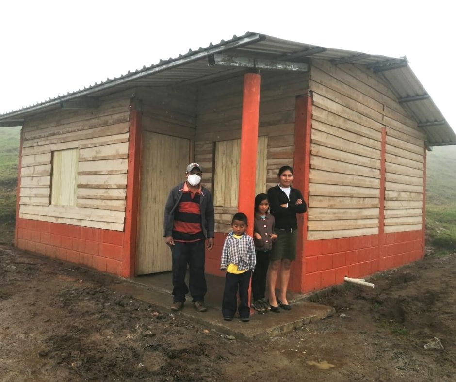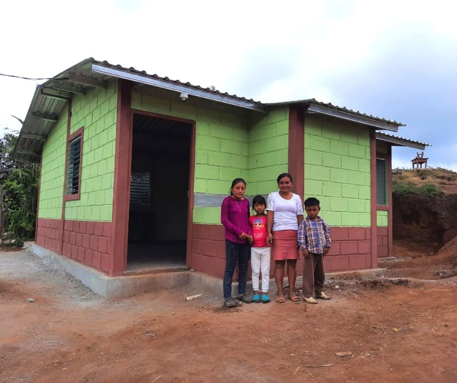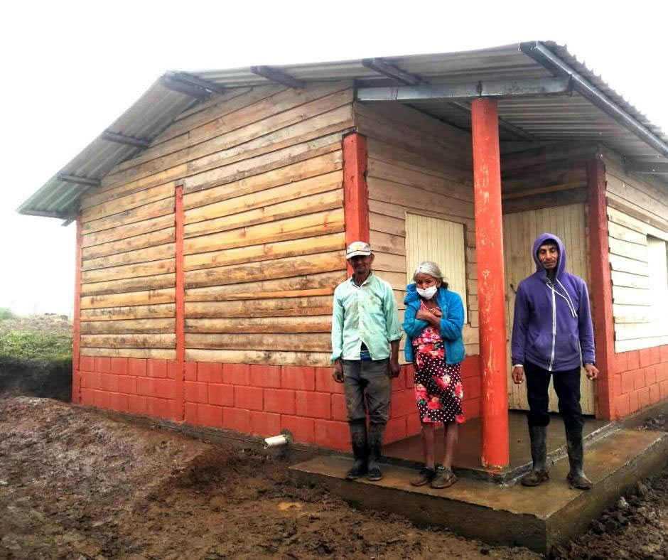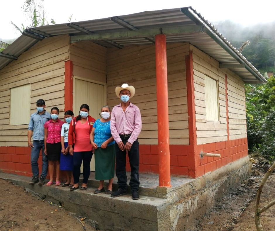 Las primeras 4 casas construidas como parte de nuestras actividades de emergencia, se completaron gracias a una donación para apoyar a 4 familias desplazadas en el occidente de Honduras, cuyas casas fueron destruidas por deslizamientos de tierra o inundaciones después de la tormenta tropical Iota.