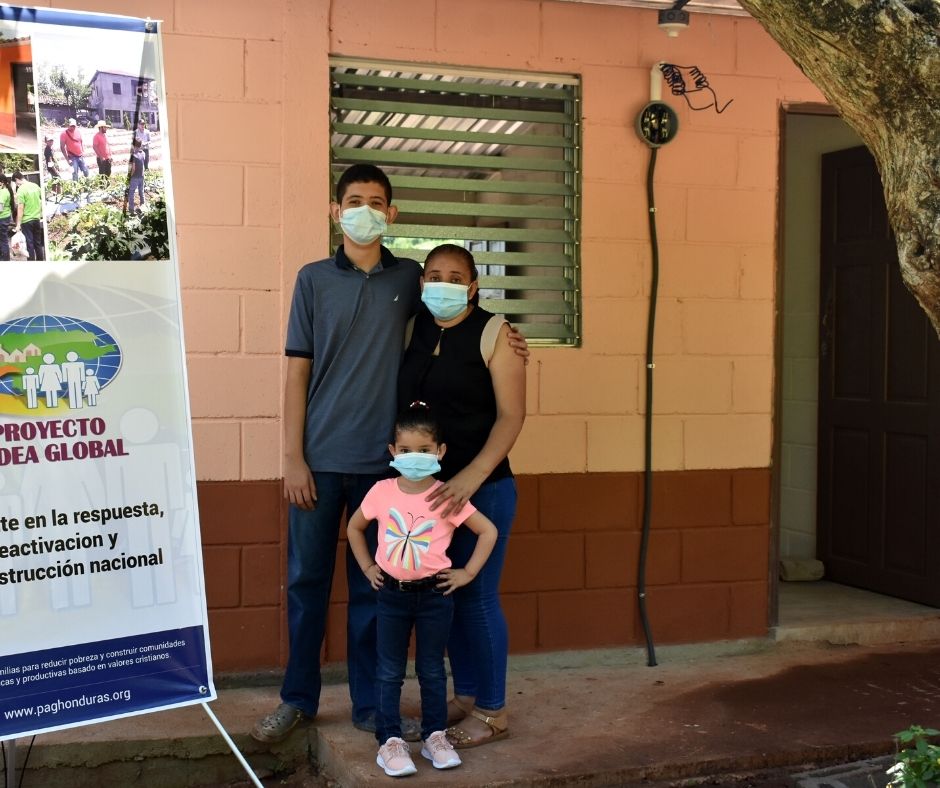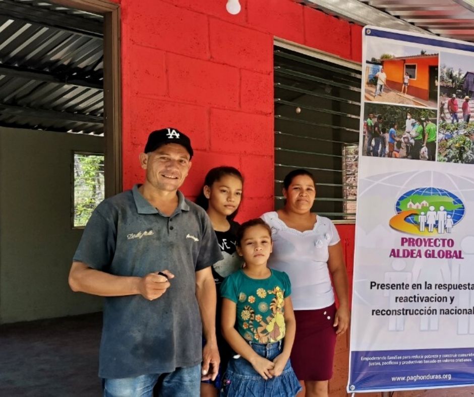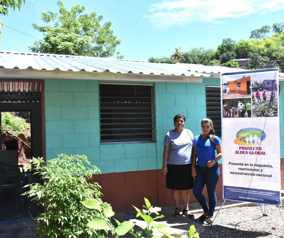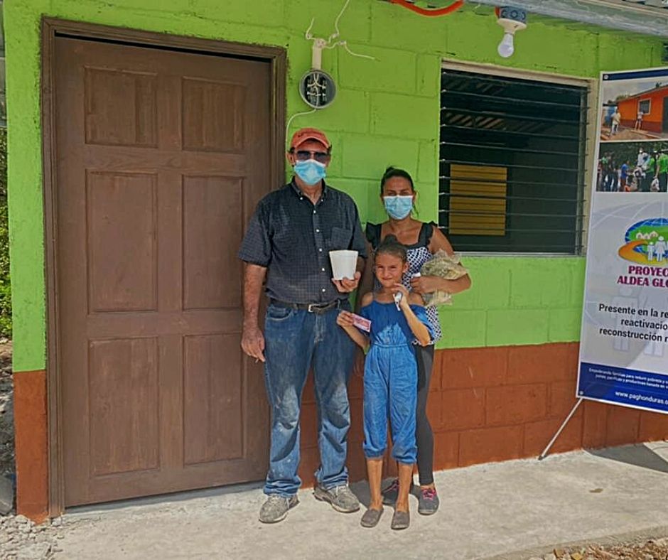 Proyecto Aldea Global también respondió al llamado de Dios de cuidar a los huérfanos en su aflicción al poyar a dos niños huérfanos (Mateo y Wendy) de la comunidad de Río Negro en el occidente de Honduras con una nueva casa, ya que perdieron a su madre y dos hermanos cuando un deslizamiento de tierra destruyó su casa en noviembre del 2020.