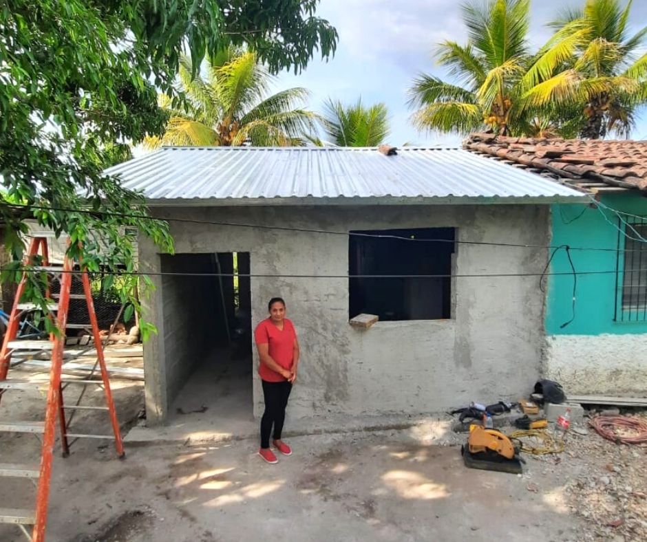 Beneficiaria Sandra Bardales de la municipalidad de Siguatepeque. Se le construyó paredes y se le agregó un techo a su cocina.