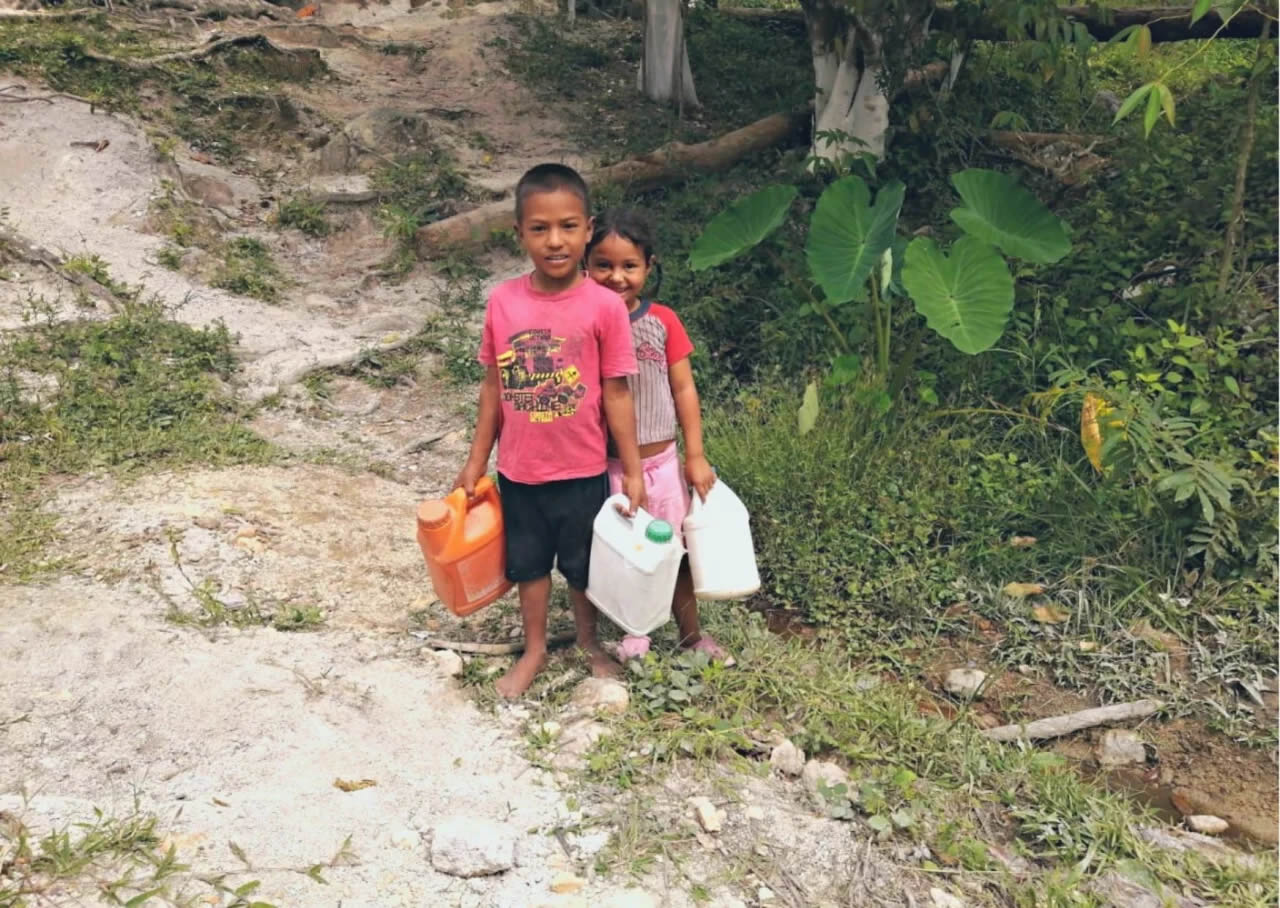 Todos los días las familias mandan a sus hijos a recoger agua utilizando recipientes de plástico. Algunos niños caminan unos minutos para llegar a la fuente de agua, mientras que otros caminan durante horas. Por lo tanto, es importante que las familias tengan acceso al agua en sus propias comunidades y esto sigue siendo una prioridad para PAG, ya que el agua es vida para estas aldeas.
