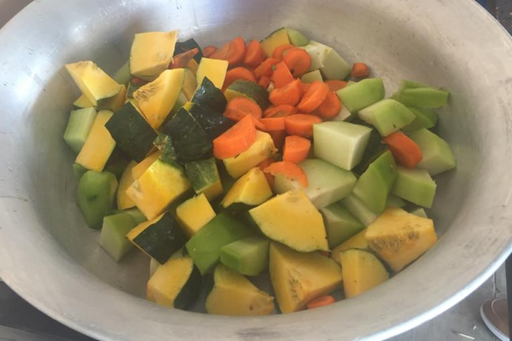 Families can use local produce like squash and carrots and add the Gleanings dry mix for a savory stew.